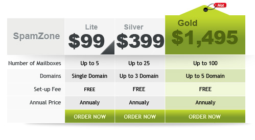 SpamZone uses all the best methods to block spam and provides comprehensive spam-blocking and anti-virus protection for your company. We target approximately 99% blockage. A huge benefit is that companies don’t have to have another box in their data rack or pay the annual support subscriptions with SpamZone.